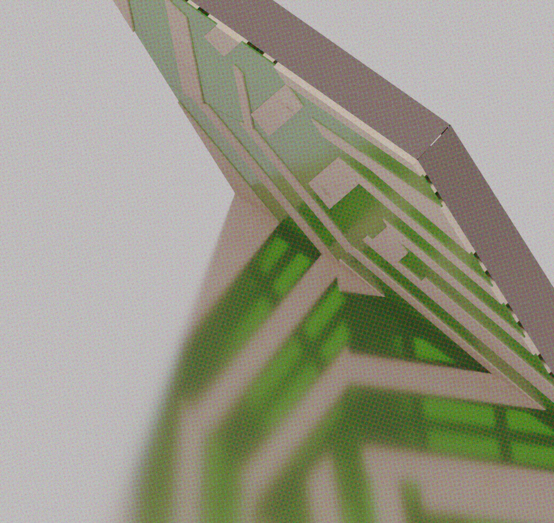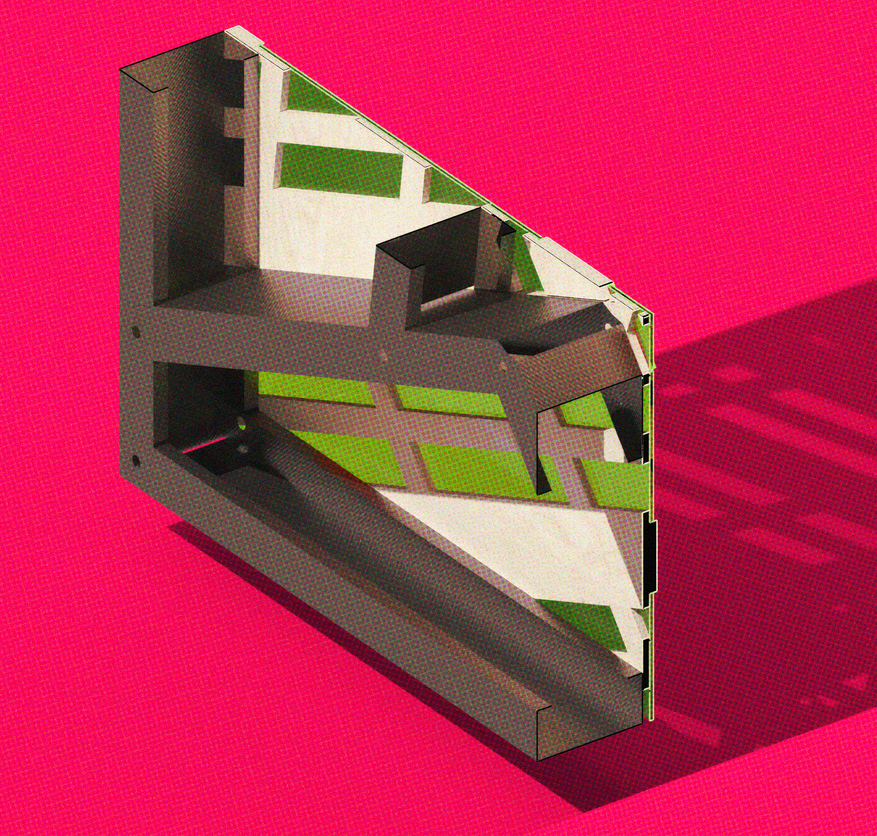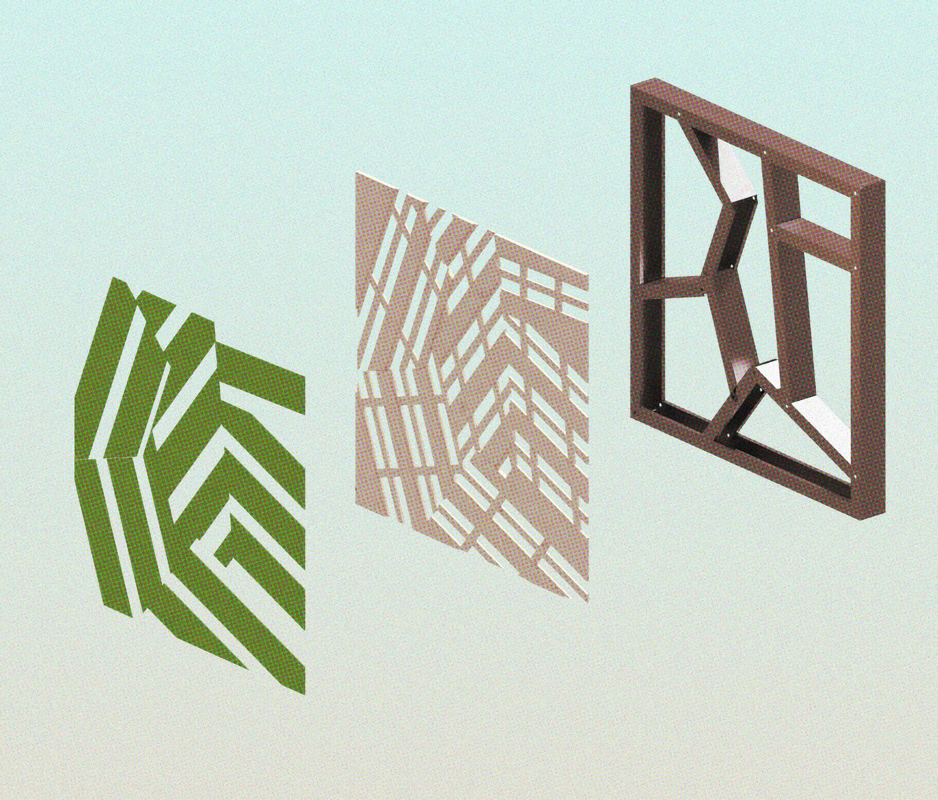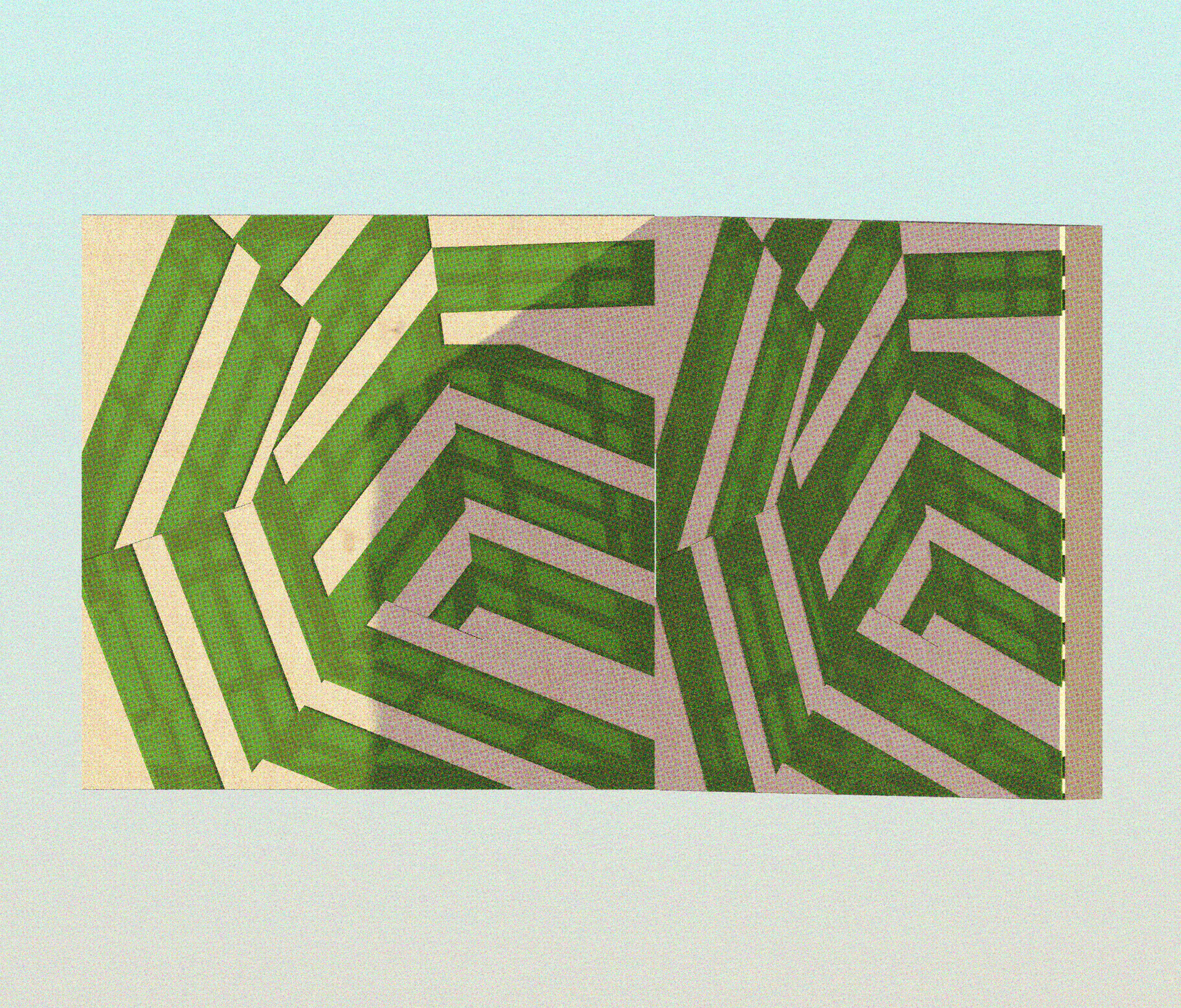1m x 1m ; birch plywood, green acrylic, steel frame.