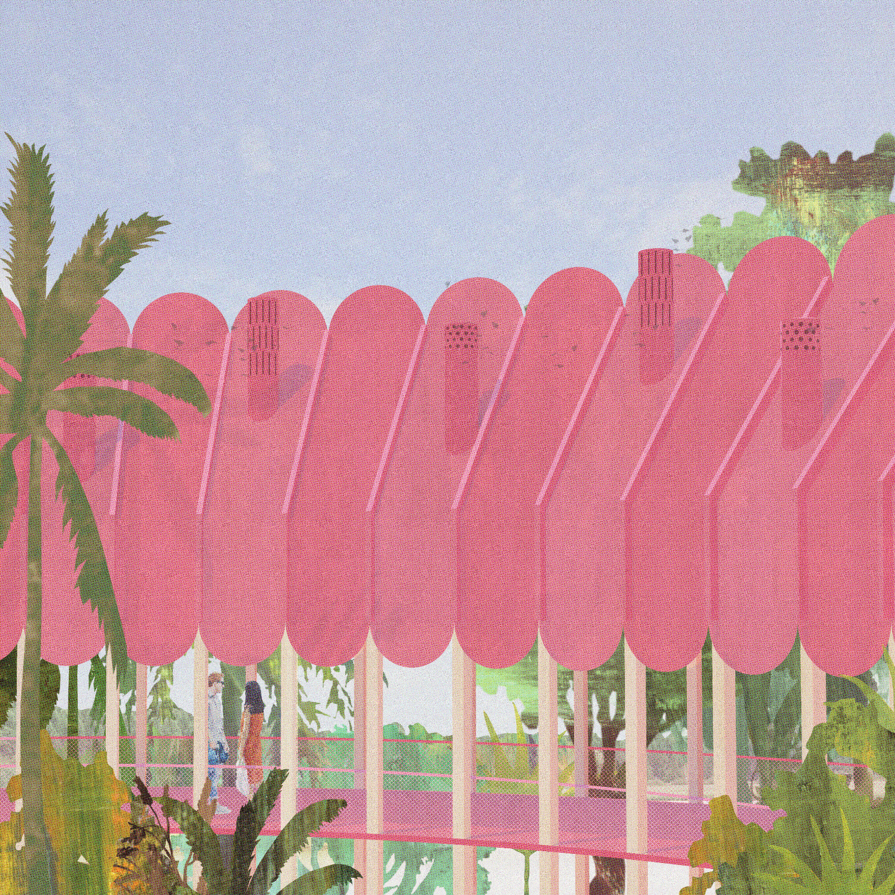 Given Miami’s aquatic concerns, between storm surge flooding and sea level rise, it is certain we must be ready to get our hands wet. Many current solutions to these issues seem to only provide immediate relief or long-term city overhauls, the ‘Park Aquatic’ embraces our wetland future, materializing a park for our current enjoyment and future shelters. The project utilizes an elevated walkway anchored by three pavilions that act as community relief not only for people but our animal counterparts. Watchtowers double as food gardens and bird houses, amphitheaters become burrowing shelters, and long halls shelter both people and bugs. Adorned with pink-powder-coat panels and frilly scalloped edges, the park embraces a Miami aesthetic not only to preserve visual identities but embrace them as a tactic for a less-than-ideal future.